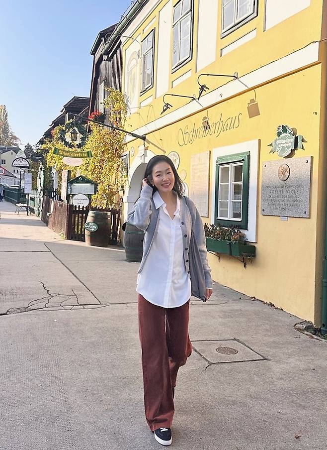 배우 박진희가 오스트리아 빈에서 셔츠와 니트 카디건 산책룩으로 여행을 만끽했다.