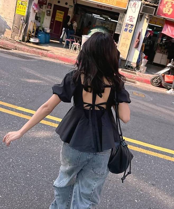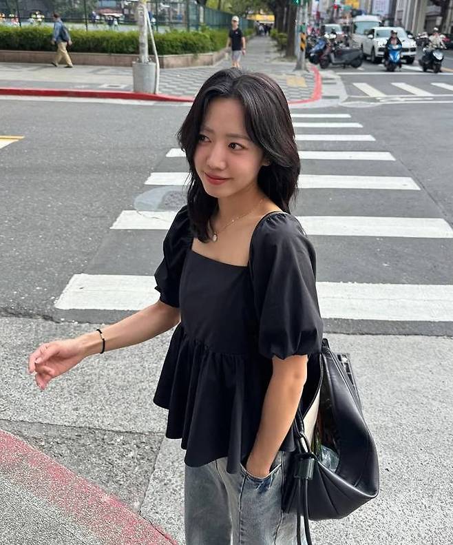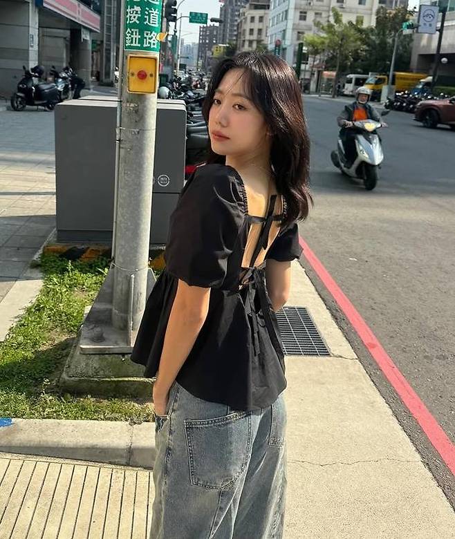 김남주는 최근 자신의 인스타그램에 벌룬 슬리브의 러플 블라우스와 느슨한 데님 팬츠를 매치한 자유분방한 걸리시룩으로 싱가포르 시내를 활보하는 사진 여러장을 게재했다.