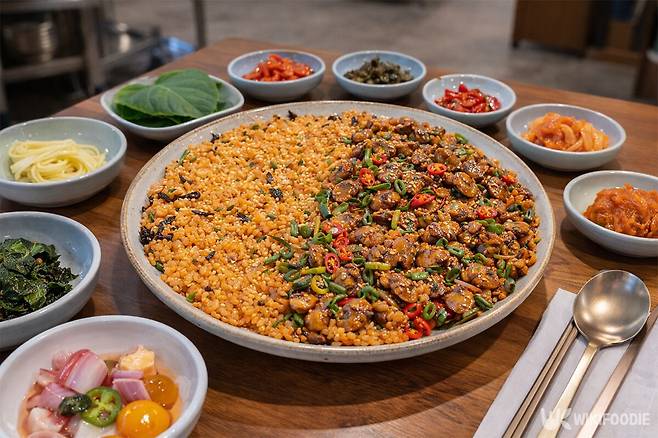 비빔밥 외에도 파채와 묵은지를 곁들인 1만 8000원의 묵은지 육전이나 고소한 들기름이 들어간 1만 2000원의 들기름 꼬막 국수 같은 별미가 준비되어 있어 여럿이 방문해 나누어 먹기에 적합하다.
