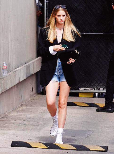 뻔하지만 결코 실패할 수 없는 티셔츠와 데님 팬츠 패션. 이 캐주얼한 룩에 가을 무드를 추가하고 싶다면 오버핏 블랙 재킷을 추천한다. 데님 쇼츠에 티셔츠, 블랙 오버핏 재킷을 매치하고 여기에 양말과 캔버스 스니커즈 같은 베이식한 아이템으로 한 끗을 더해 세련된 간절기 스타일 완성. 오피스 룩으로 활용해도 좋다.