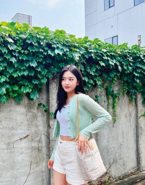 실용적인 카디건 스타일을 찾고 있다면 아이브 안유진의 룩을 참고하자. 크림색 쇼트 팬츠에 화이트 톱, 심플한 디자인의 크롭트 카디건을 매치해 꾸안꾸 룩의 정석을 보여준다. 민트 컬러가 싱그러운 늦여름의 분위기와도 찰떡!