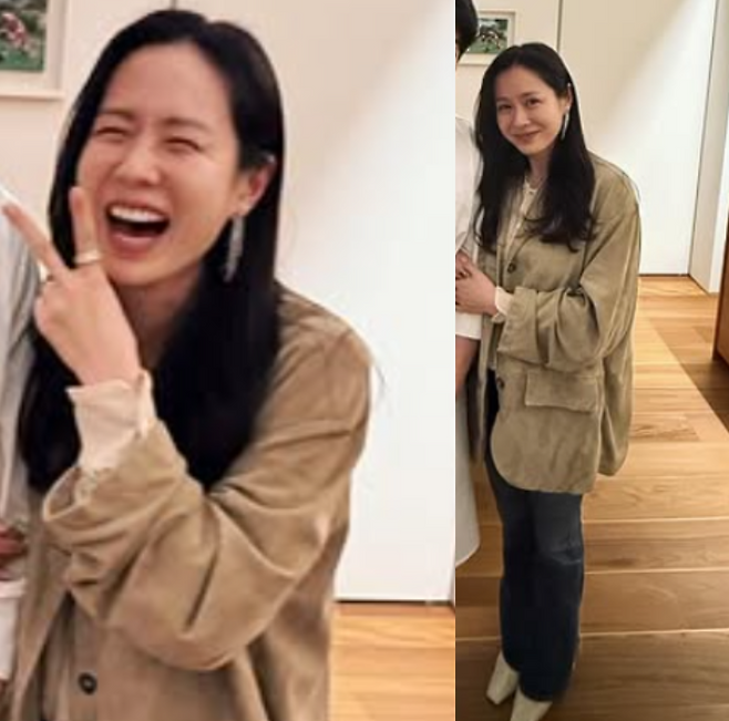 손예진 님은 부드러운 베이지 컬러의 자켓을 선택해 차분하고 세련된 이미지를 연출했어요. 깔끔한 실루엣이 돋보이며 다양한 스타일에 잘 어울리는 아이템이었죠.