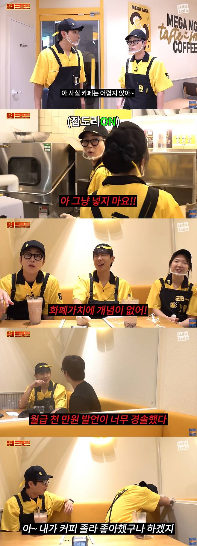 휴식 시간, 이준은 지점장에게 "메가커피에 바라는 게 있냐"고 질문했고, 지점장은 "돈이나 많이 줬으면 좋겠다"고 답했다. 그러자 이준은 "지금 돈 많이 벌 거 같다. 지점장인데 월 1,000만 원은 찍지 않냐"고 물었고, 당황한 지점장의 모습을 본 딘딘은 "연예인들은 이게 문제다. 화폐 가치에 개념이 없다. 슈퍼카 타고 다니고 제니 침대 쓰니깐 정신이 나갔다"며 무섭게 지적했다.