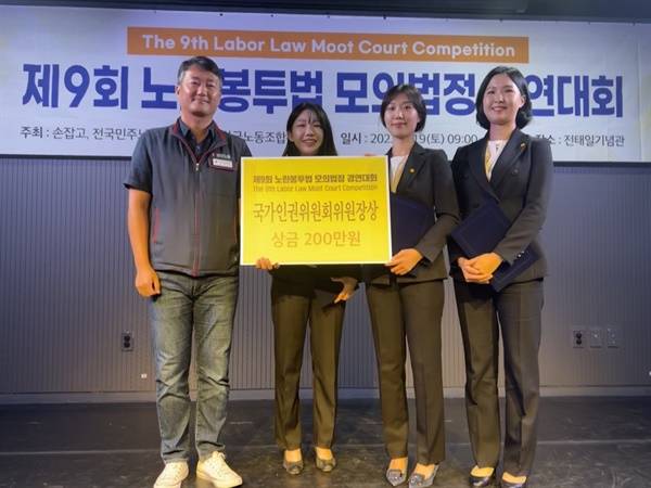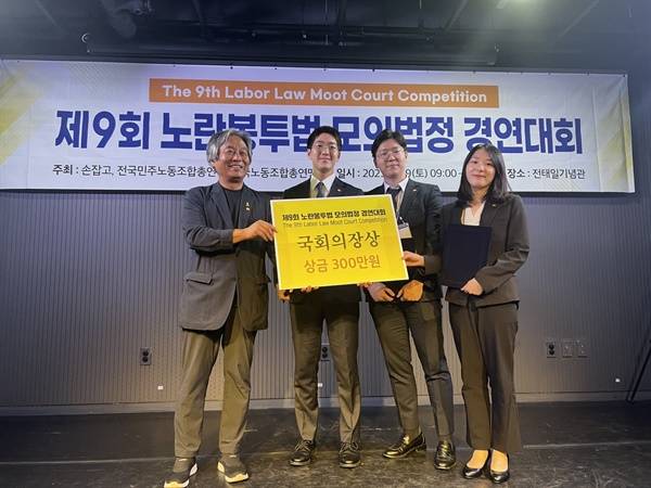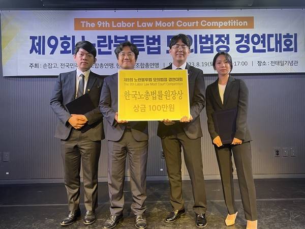 장려상 한국노총법률원장상(상금100만원) 9011번팀 김태원, 권승현, 이다현(서강대학교 소속).