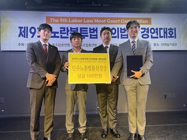 장려상 민주노총법률원장상(상금100만원) 9019번팀 곽영출, 김동현, 이동준(성균관대학교 소속).