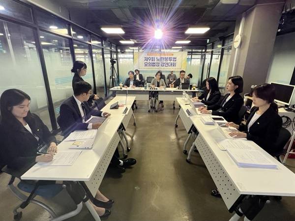 국내 유일 노동법 모의법정 경연대회인 제9회 노란봉투법 모의법정 경연대회가 지난 19일 전태일기념관에서 열린 본선을 끝으로 4개월여의 대장정을 마무리했다. 역대 최다인원인 90명(30팀)이 참가해 서면심사를 거쳐 24명(8팀)이 본선에서 경합을 벌였다.