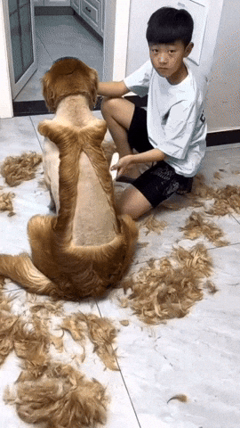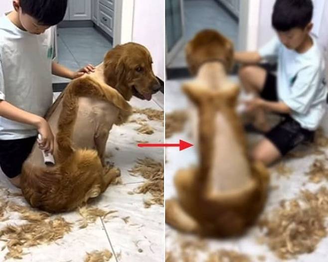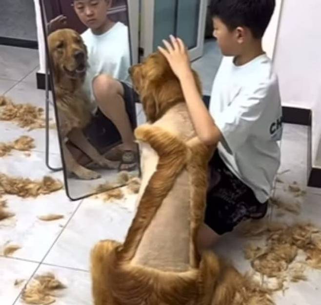 사연은 이렇습니다. SNS상에는 날씨가 더워지기 시작하자 골든 리트리버 강아지를 위해 손수 직접 바리깡을 손에 들고 미용하는 아들 모습이 담긴 현장이 올라온 것.