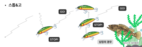 - 워블링과 래틀 소리로 시각과 청각을 자극(스푼과 비교해 싱킹 미노우의 장점)