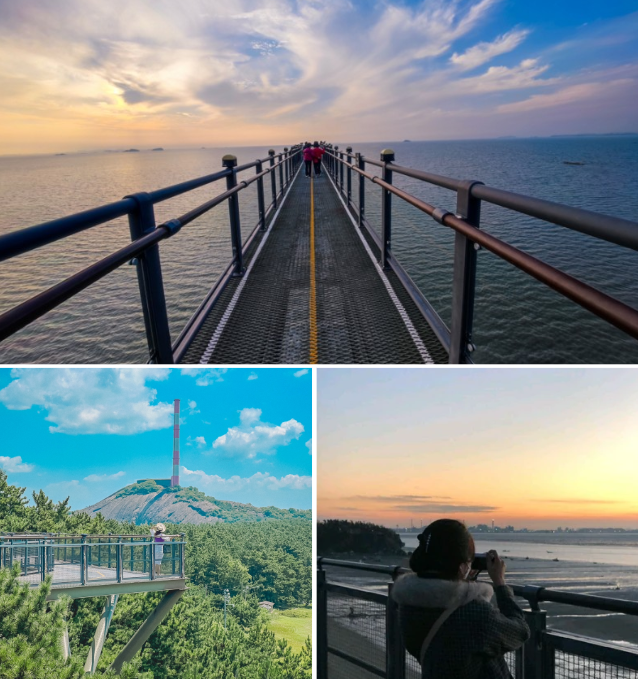 충남 서천군 장항읍에 위치한 장항스카이워크는 아름다운 솔숲과 바다를 잇는 높이 15m, 길이 286m의 스카이워크입니다. 솔향기를 맡으며 탁 트인 하늘과 바다를 온전히 느낄 수 있는 공간인데요. 스카이워크의 또 다른 이름은 기벌포 해전 전망대입니다.