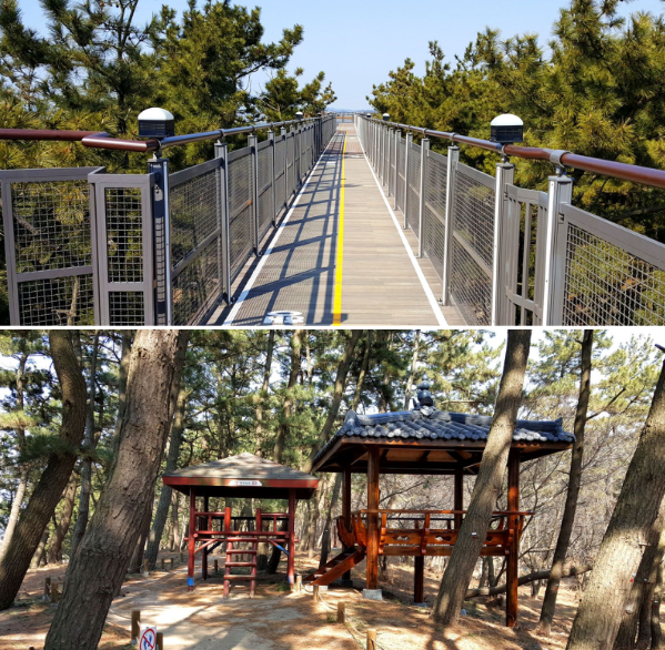 스카이워크에서 내려오면 데크 아래로 펼쳐졌던 소나무 숲이 관광객들을 맞습니다. 산림욕장 답게 힐링하기에 좋으며 도심에서는 결코 느낄 수 없는 자연의 소리를 만끽할 수 있습니다.