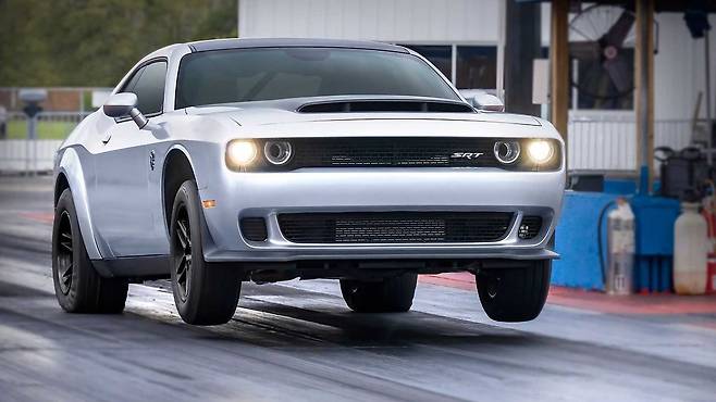 내연기관 머슬카 시대의 마지막을 장식할 모델은 챌린저 SRT 데몬 170. ‘악마’라는 이름에 걸맞게, 엔진 출력은 1,025마력을 넘긴다(E85 에탄올 연료 사용 시). E10 등급의 가솔린을 넣으면 900마력으로 내려간다. 닷지가 밝힌 0→시속 60마일 가속은 1.66초. 현존하는 어떤 수퍼카보다도 발진가속이 빠르다. 변속기는 8단 자동기어.
