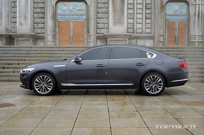 전면부는 대형 그릴과 함께 슬림한 헤드램프를 통해 현대적인 분위기다. 부분변경 이전 모델이 상하로 배치된 헤드램프를 통해 권위적이었다면, 이제는 세련미가 돋보인다. 차체와의 파팅라인이 눈에 띄지 않는 아일랜드 타입 보닛과 패널간 단차가 적은 점은 긍정적이다.