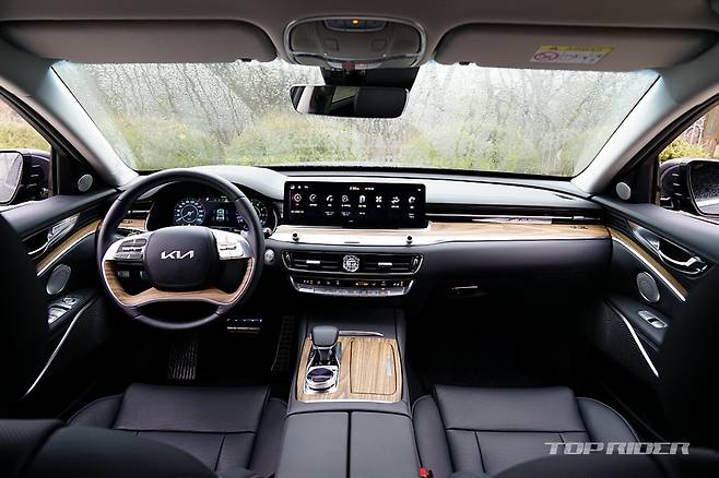 실내공간은 K9의 가장 큰 장점 중 하나로 쿠페형 실루엣을 사용하지 않은 탓에 레그룸은 물론 1열과 2열의 헤드룸이 여유롭다. 특히 2열 시트의 착좌감이 인상적인데, 전동식 리클라이닝 옵션을 선택하지 않아도 충분히 좋은 구성이다. G80 대비 2열 개방감이 좋은 편이다.