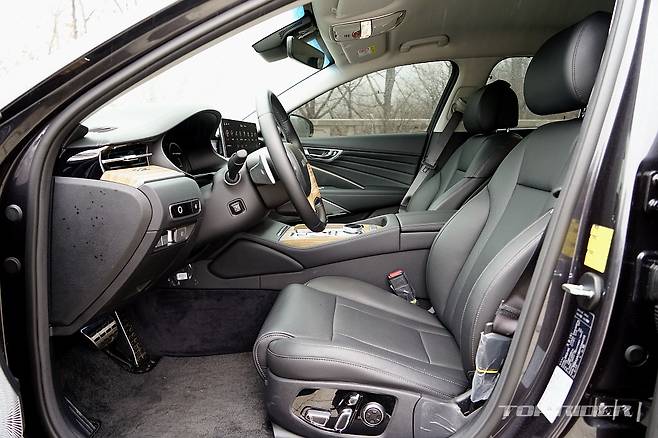 실내는 수평형 대시보드와 오픈포어 우드 감각의 인레이, 얇은 베젤의 14.5인치 가로형 인포테인먼트 모니터와 7인치 전자식 계기판, 금속재질이 연상되는 각종 스위치류 등 벤츠와 BMW의 분위기가 함께 담겨있다. 실제 조작 편의성은 국산 대형차 중 가장 우수한 편이다.