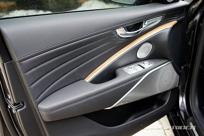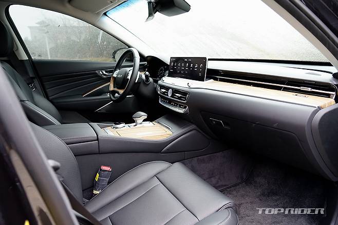 실내는 수평형 대시보드와 오픈포어 우드 감각의 인레이, 얇은 베젤의 14.5인치 가로형 인포테인먼트 모니터와 7인치 전자식 계기판, 금속재질이 연상되는 각종 스위치류 등 벤츠와 BMW의 분위기가 함께 담겨있다. 실제 조작 편의성은 국산 대형차 중 가장 우수한 편이다.