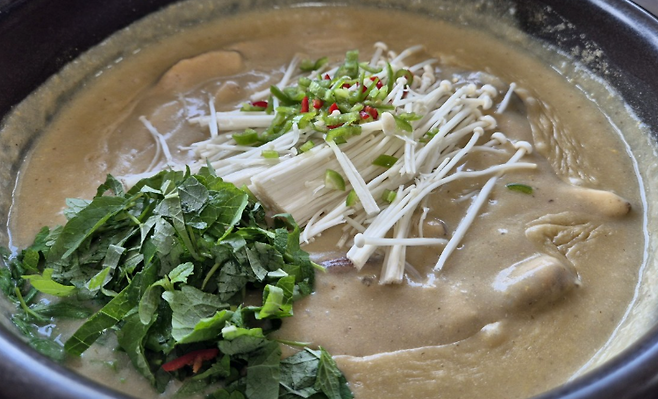 🦀 참게가리장: 참게를 곱게 갈아 들깨와 함께 끓인 고소한 죽 형태. 비린내 전혀 없음