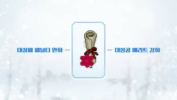 먼저 ‘인챈트’는 현재 장비에 대한 값이 이전과는 많이 달라졌기 때문에 실패를 완화시키는 방향으로 개선이 진행된다. ‘대실패 패널티 완화’와 ‘대성공 메리트 강화’ 두 갈래로 개선되는데, 대실패 시 내구도 감소 패널티가 기존 대비 대폭 감소하며, 반면 대성공 시에는 효과가 최하 옵션이 나오는 일 없이 최댓값에 더욱 근사치로 나올 수 있도록 변경된다.