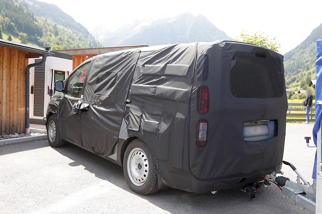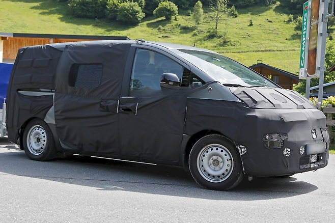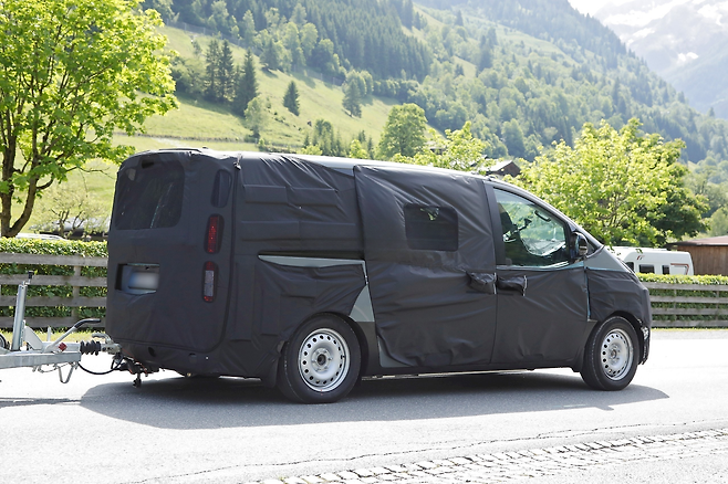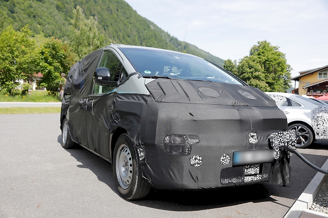 이번 리프레시의 가장 큰 변화는 스타리아 최초의 순수 전기차 모델이 라인업에 추가된다는 점이다. 지난 4월 독일에서 테스트 중인 스타리아 EV 프로토타입이 포착된 바 있으며, 전면에는 닫힌 그릴과 운전석 쪽 전면 범퍼에 충전 포트가 배치될 것으로 확인됐다.