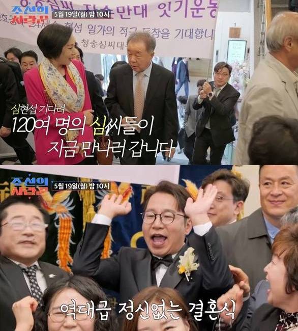 심현섭 씨의 결혼식에는 ‘청송 심씨’ 120여 명이 등장해 더욱 화제가 되었어요. ‘청송 심씨 자손만대 잇기 운동’ 현수막을 높이 들고 등장한 ‘심 씨’들의 위풍당당한 모습에 최성국 씨는 “밖에서 이랬냐”라며 폭소하기도 했다네요. 😂 결혼식장을 가득 메운 사람들을 보며 김국진 씨는 “이거 영화 아니냐”라는 감탄을 금치 못했다고 합니다.