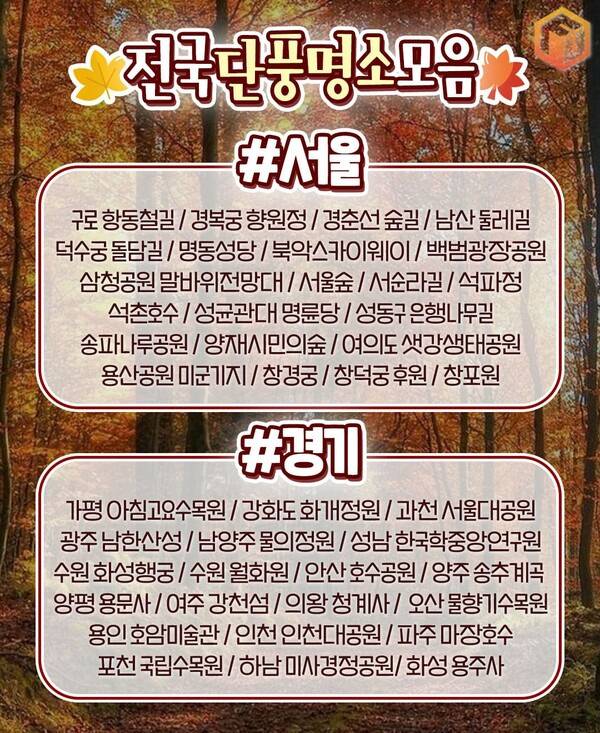 2. 전국 단풍명소 총정리2-1. 서울 경기 단풍 명소