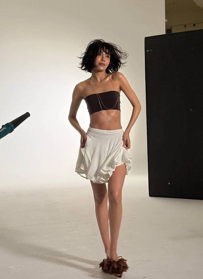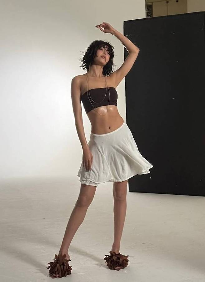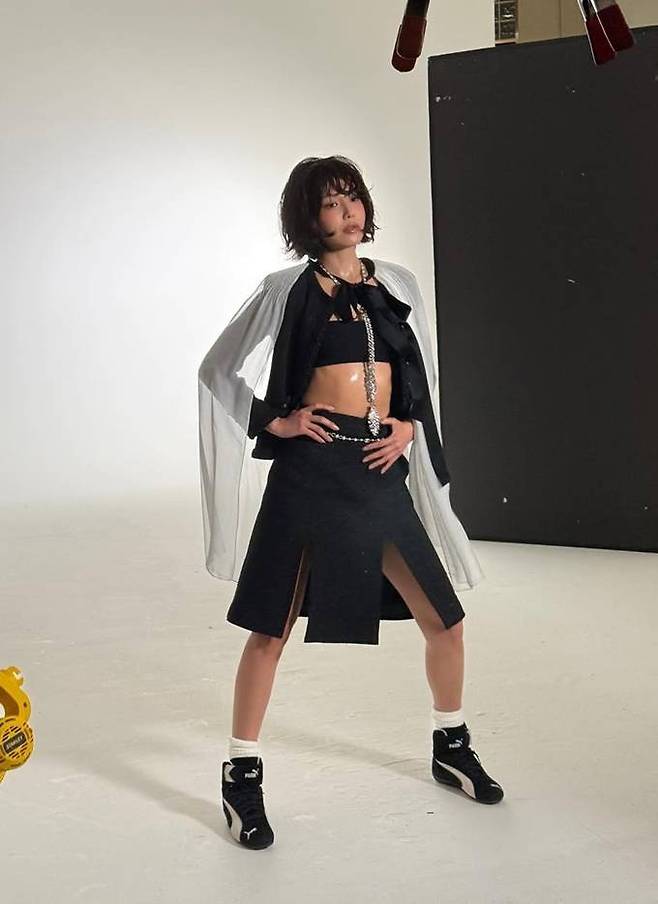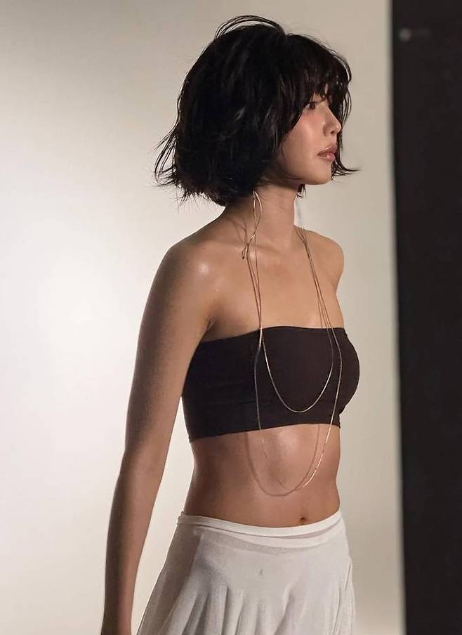 공개한 사진에서 수영은 복근이 드러난 튜브톱과 미니 스커트, 블랙 바디슈트 스타일로 군살 하나없는 172Cm의 완벽한 비율을 과시했다.