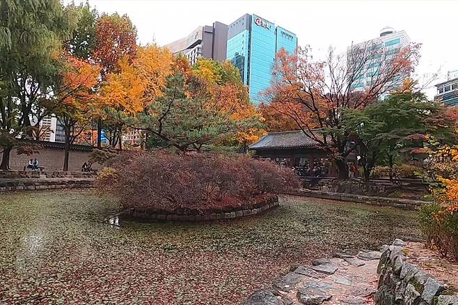 가을철에는 덕수궁의 고즈넉한 풍경과 단풍이 어우러져 한층 더 운치 있는 분위기를 자아냅니다.