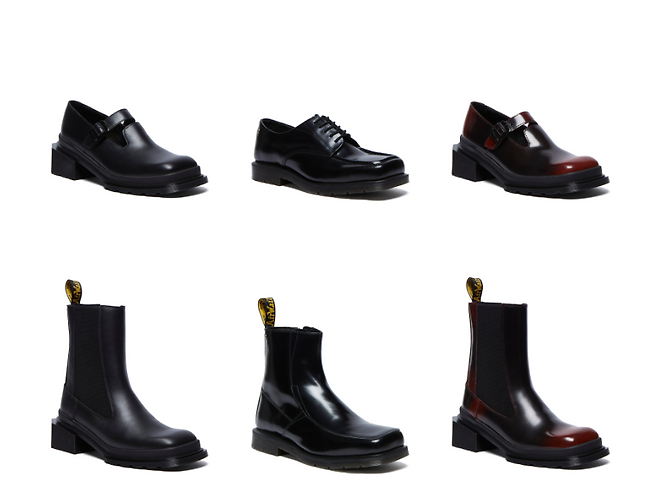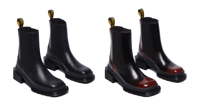 공개된 닥터마틴 스퀘어 토 컬렉션은 각진 앞코가 특징으로 닥터마틴의 혁신적이고 새로워진 디자인 방향성을 강조하고 있어요