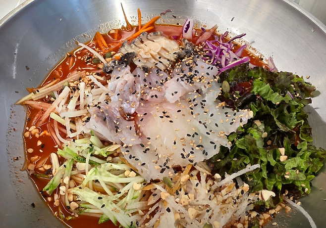 ▶ 청춘물회정식 – 순두부와 신선한 물회가 어우러져 색다른 맛을 선사하며, 푸짐한 양으로 만족도를 높여줍니다.