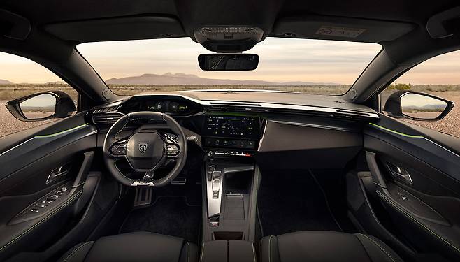 외관은 1,500mm 낮은 전고에 4,700mm 전장, 2,790mm 휠베이스로 강렬한 비율을 갖췄다. 캣츠 이어 루프 라인, 사자의 송곳니형 주간등 등 푸조 특유의 디테일이 더해져 고유의 존재감을 발산한다. 실내는 콤팩트 D컷 스티어링, 3D 헤드업 클러스터, 10인치 인포테인먼트 등으로 구성되며, 최대 1,611리터 트렁크 용량으로 SUV급 실용성을 제공한다.
