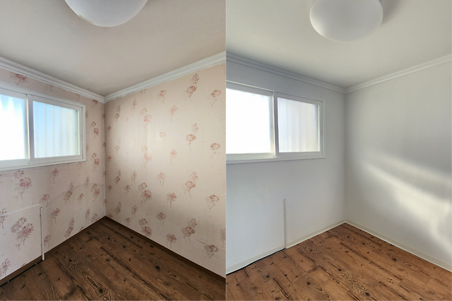 시공 전, 후를 비교해 보세요. 너무 깔끔하고 예쁘게 잘 됐죠? 고수님이 직접 방문하셔서 정말 꼼꼼하게 보고 견적 내주셨어요. 방의 상태를 진단하고 제 방에 필요한 것들을 콕콕 집어주셨거든요. 벽지 선택도 비슷하면서도 다른 게 많아 어지러웠는데 고수님이 세세하게 잘 알려주셨습니다.