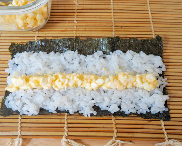 에그스크램블도 너무 익히면 퍽퍽해지므로 반쯤 익은 상태에서 불을 끄고 여열로 마무리하는 게 부드러운 식감을 살리는 비법이다. 김은 촉촉한 상태일 때 말아야 찢어지지 않고 속재료가 잘 고정된다. 이런 작은 디테일만 신경 쓰면, 2가지 재료만으로도 꽤 완성도 높은 김밥이 만들어진다.