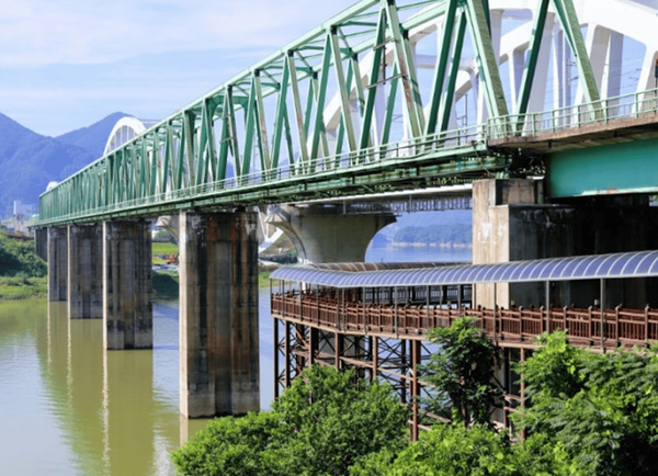 단양강을 따라 길게 이어진 단양강 잔도는 아찔한 절벽 위에 설치된 보행용 데크길로, 물 위를 걷는 듯한 색다른 경험을 제공하는 명소입니다. 총 길이 약 1.2km에 이르는 이 산책길은 남한강의 물길을 따라 시원한 바람을 맞으며 걸을 수 있는 특별한 여정인데요. 여름철에도 그늘이 많고 바람이 시원하게 불어 무더위를 피하기에 제격입니다.