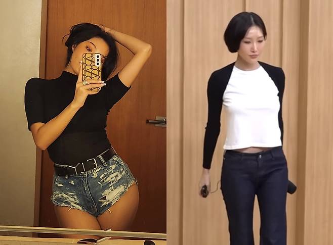 가수 화사가 체중 감량 후 달라진 옷핏을 뽐냈다.