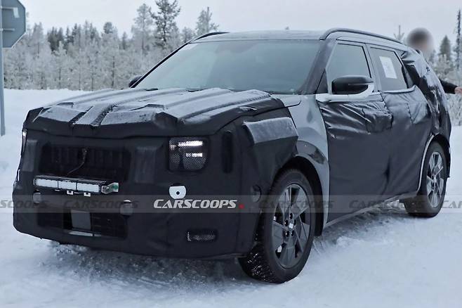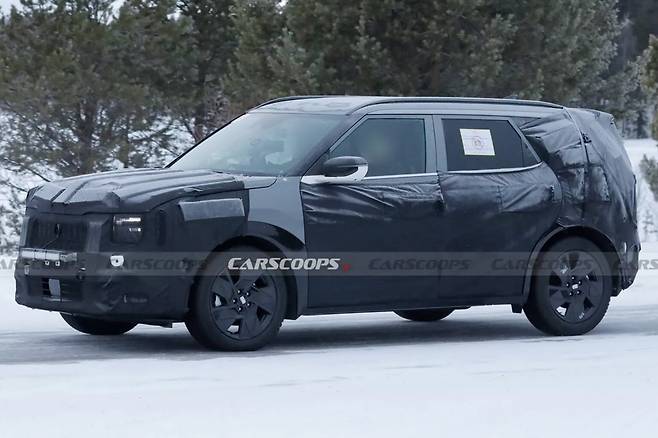 해당 디자인은 기아의 스타맵 시그니처를 새로운 방식으로 해석한 것으로, 기존 쏘렌토나 카니발에서 볼 수 있었던 직선적이고 수직적인 형태에서 벗어나 보다 역동적인 모습을 보여주고 있다. 그릴 디자인도 DRL과 유사한 수직 패턴을 적용해 더욱 다부진 전면부를 완성했다. 측면 차체 길이는 다소 길어진 것으로 보이며, 이를 통해 실내 레그룸 공간도 확장될 것으로 예상된다.