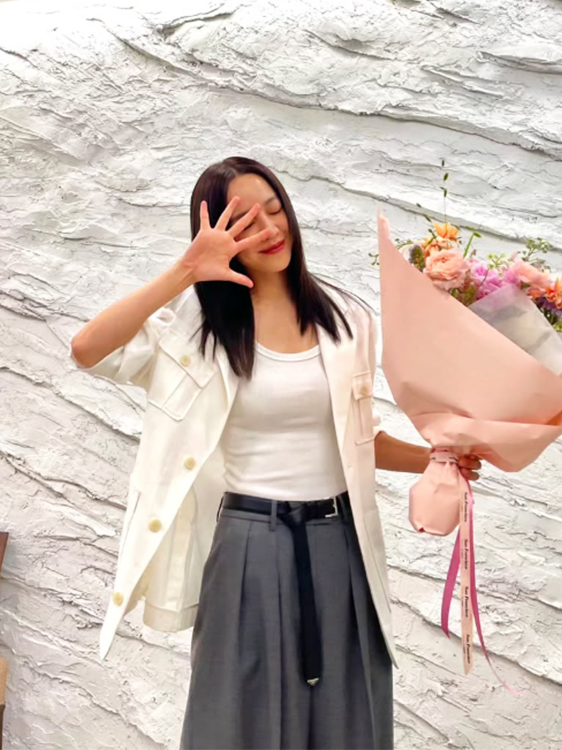 이날 신혜선은 화이트 반팔 재킷에 슬리브리스 이너를 매치하며 시원하면서도 포멀한 여름 스타일을 선보였다.