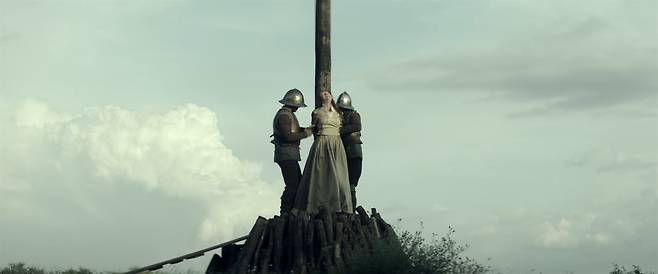 | ▲ 영화 <레커닝> 한 장면 주인공 그레이스의 모친이 마녀로 몰려 죽는 장면 |