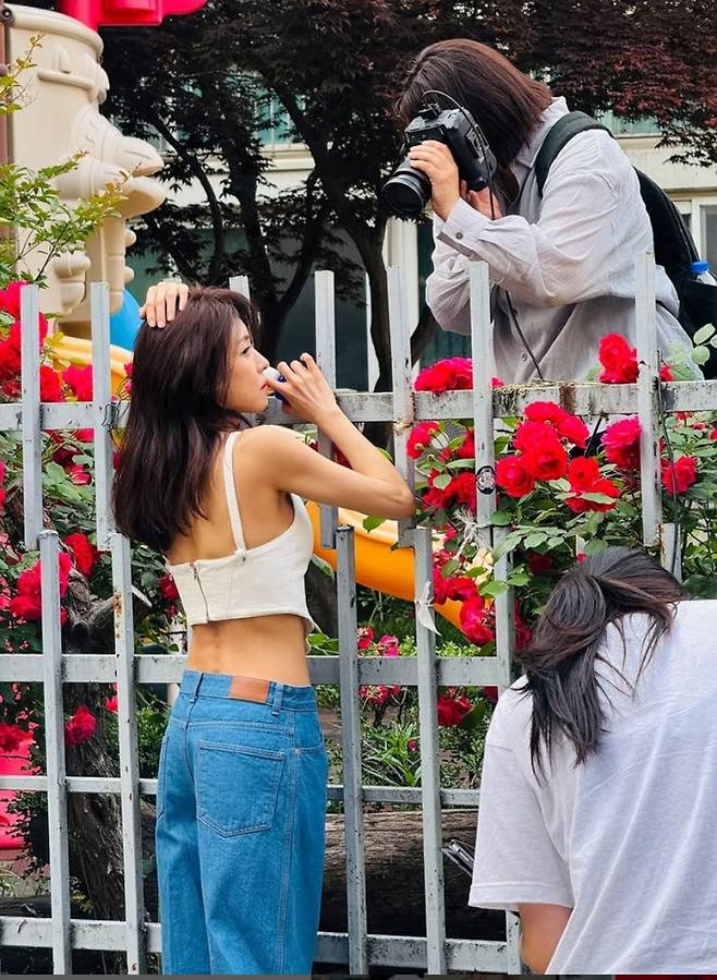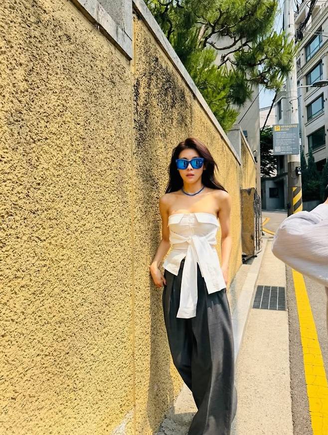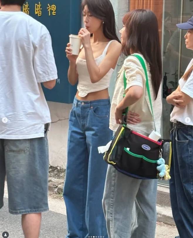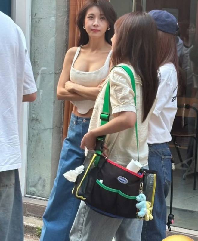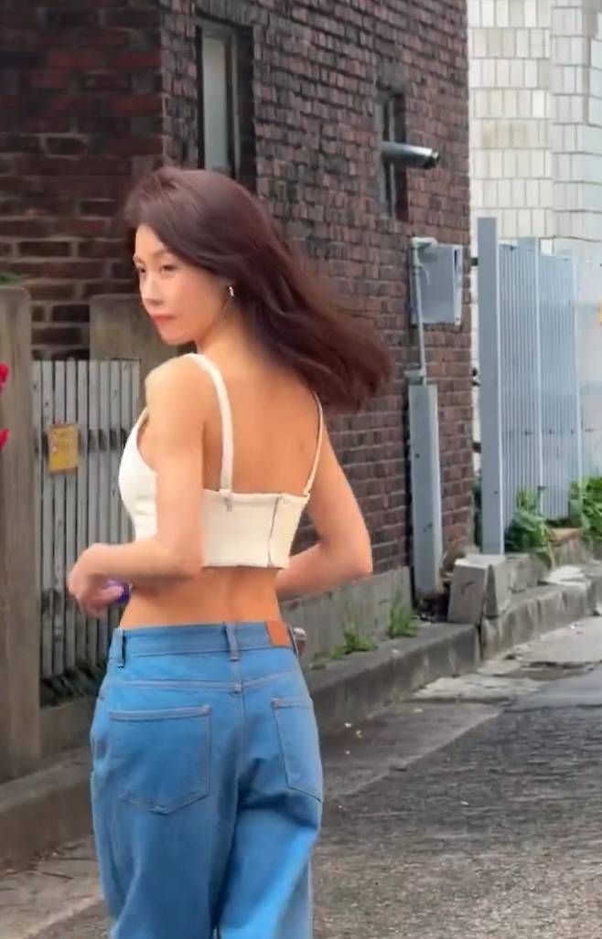 그렇다면 하지원 씨는 어떤 스타일의 옷을 입었기에 이렇게 화제가 된 걸까요? 사진 속 하지원 씨는 트렌디한 크림빛 민소매 크롭탑에 하이웨스트 와이드 데님 팬츠를 매치하여 완벽한 여름 코디를 선보였습니다. 군살 하나 없는 탄탄한 라인과 슬림한 어깨, 그리고 은은하게 빛나는 피부까지 더해져 마치 한 편의 여름 광고 화보를 보는 듯했습니다.