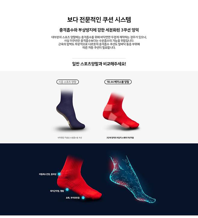 보다 전문적인 시스템으로 제작된 스퀘어 쿠션 압박 야구양말 입니다.