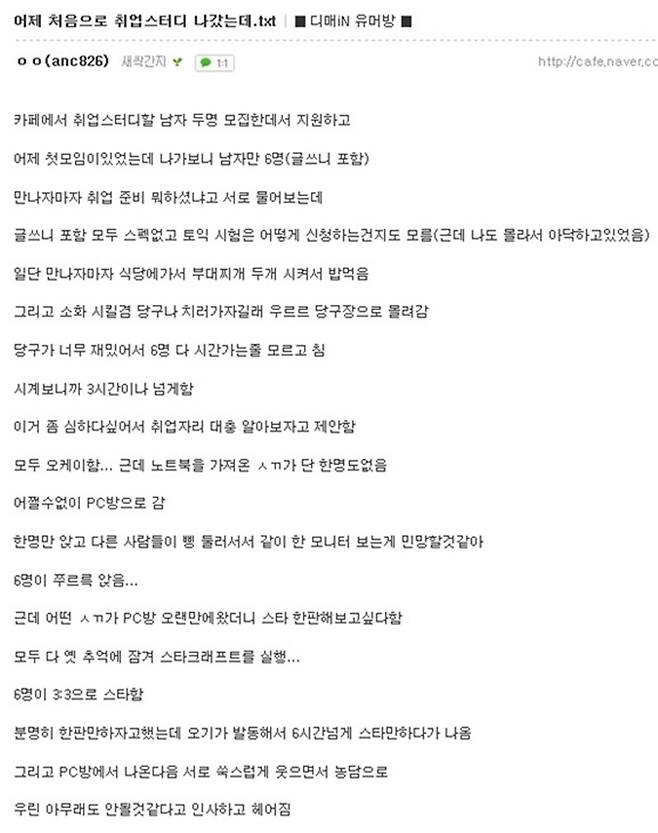 2) 어제 처음으로 취업스터디 나갔는데.txt, 디젤매니아