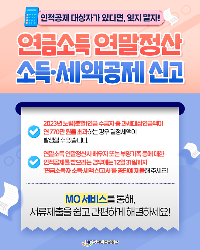 Tip. 연금소득자 소득·세액공제 신고서 및 제출 서류! MO서비스로 쉽고 빠르게 제출 가능합니다!