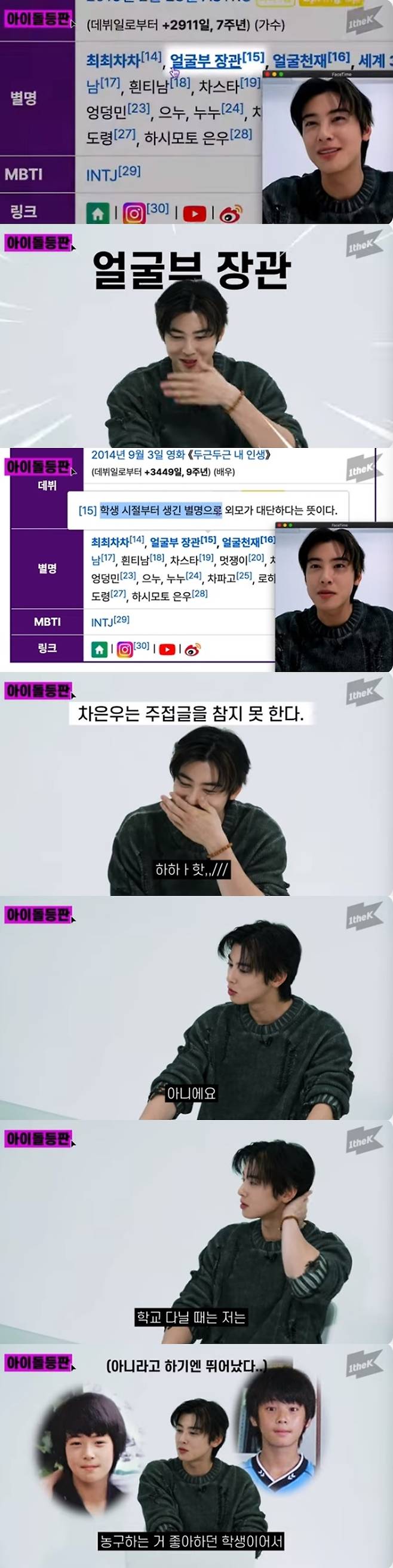 차은우는 이날 나무위키에 있는 자신의 정보를 읽었다.