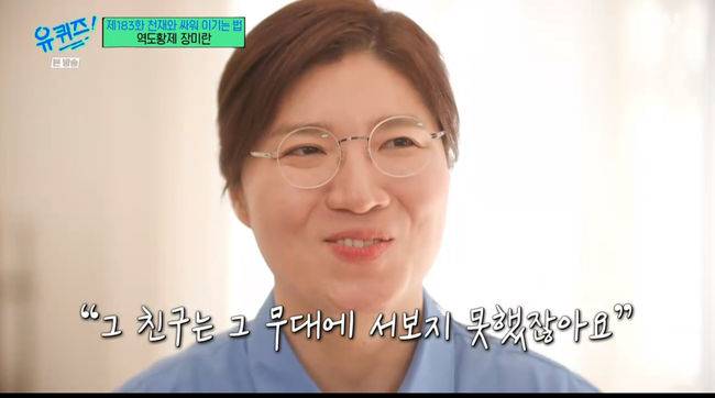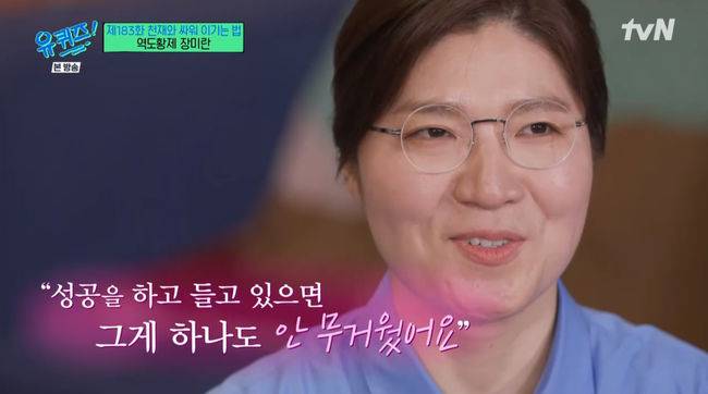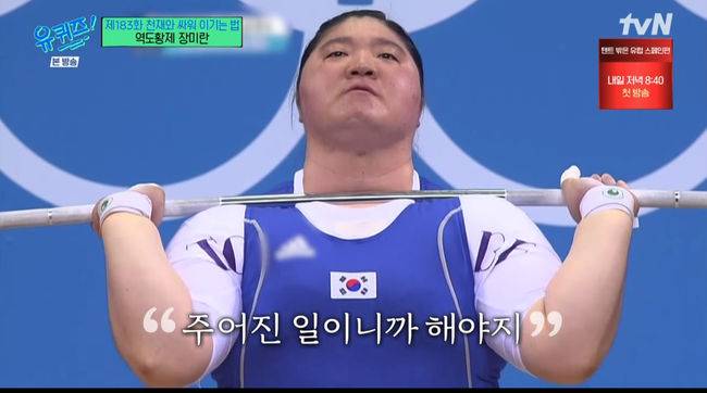 1일 방송된 tvN '유 퀴즈 온 더 블럭'(이하 '유퀴즈')에서는 '천재와 싸워 이기는 법'으로 역도 금메달리스트 장미란 선수가 등장했다.