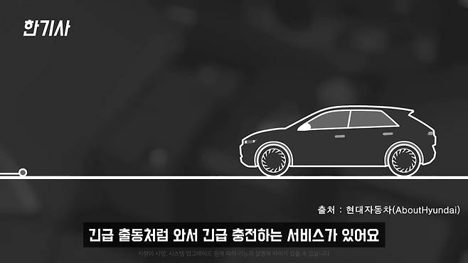 배터리를 충전할 수 있는 다른 충전소가 70KM 거리에 있어요. 근데 지금 주행가능거리가 50KM 밖에 안 되는 그런 경우는 많이 없어요. 몇 년 전 초창기 때는 그런 경우가 있었는데, 생각보다 요즘에는 웬만한 읍사무소, 동사무소에 다 충전소가 있고요. 경찰서나 아니면 마트에도 어지간하면 있어요. 시간은 좀 걸리지만 금방 찾아 들어갈 수는 있어요. 그리고 이게 현대모터스에서 제공하는 서비스로 알고 있는데, 배터리가 방전돼서 차가 서잖아요. 그럼 긴급출동처럼 와서 긴급충전하는 서비스가 있어요. 그걸 활용하면 다음 충전소까지는 무난하게 이동할 수 있어요.