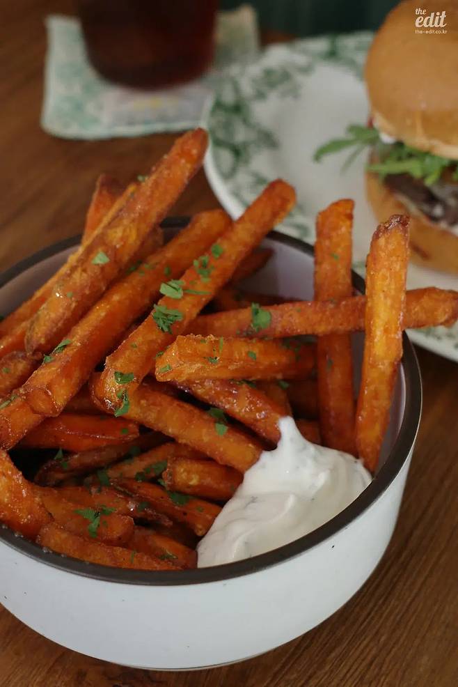 샌드위치, 파스타, 버거, 샐러드, 수프까지 코쿤은 다양한 브런치 메뉴를 제공한다. 그중 내가 주문한 건 코쿤 버거와 고구마 프라이에 에티오피아 할로 와추 내추럴 원두로 내린 드립 커피다. 나름 수제버거 좀 먹어봤다고 생각했지만 일반적인 패티 대신 얇은 소고기를 층층이 쌓아 만든 코쿤 버거는 달랐다. 구운 파프리카의 단맛과 씁쓸하면서도 싱그러운 루콜라의 탁월한 궁합. 고구마 프라이는 안 시키면 서운할 정도로 강하게 추천하는 사이드 메뉴다. 고구마 맛탕의 고급스러운 버전이라고 하면 상상이 될까? 과하지 않은 단맛의 프라이를 은은한 산미가 감도는 딥에 푹 찍어 드시길.