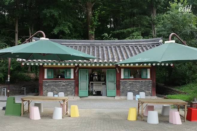 백범 김구 선생과 윤봉길 의사를 비롯한 독립운동가 8인의 묘역이자 산책로와 운동 시설을 갖춘 시민공원인 용산 효창공원. 걷고 뛰고 공을 던지는 이들로 이른 아침부터 공원은 활기를 띤다. 조금 걷다 보면 배드민턴장 앞쪽으로 한옥 건물이 나타나는데, 초록색 파라솔 아래 땀을 뻘뻘 흘리며 아이스 커피를 들이켜거나 갓 나온 샌드위치를 크게 한입 베어 먹는 사람들이 보인다. 파자마델리는 직접 구운 빵과 직접 볶은 커피를 제공하는 작은 카페다. 잠옷을 입은 채 아침 일찍 요리하는 걸 즐기던 두 주인장이 파자마에 슬리퍼 끌고 편하게 드나들 수 있는 동네 가게를 꾸려가는 중이다. 공원 바깥의 매장이 파자마델리 본점, 공원 안쪽의 매장이 지난 6월에 오픈한 파자마델리 효창공원점이다.