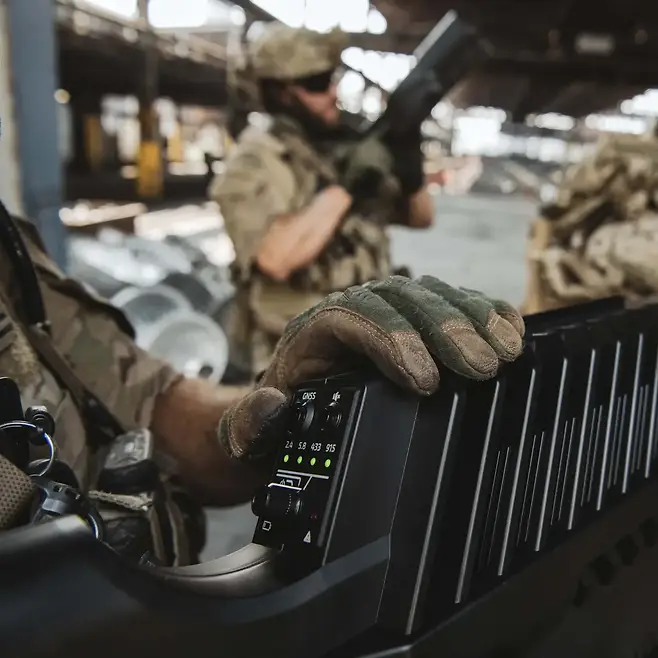 이 장비는 최대 2km의 장거리 대응 능력을 갖추고 있으며, 무게는 배터리 포함 약 7.3kg으로 실전 휴대가 가능합니다 . 작전 환경에서 즉각 장착·조작이 가능하도록 로터리 다이얼 방식의 주파수 선택기, LED 시각 표시등, Picatinny 레일 등의 실용적 기능도 포함되어 있습니다 .