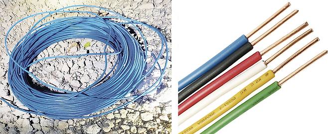 IV전선은 실내에서 사용되는 전선으로, 1.5SQ, 2.5SQ, 4SQ, 6SQ 이렇게 네 종류가 있다. 주로 전등 배선용으로는 2.5SQ를, 콘센트용으로는 4SQ를 사용한다. ‘스퀘어’라고 읽는 ‘SQ’는 전선의 굵기를 나타내는 단위다. 전등은 전기 소모가 적어 2.5SQ를 사용하면 되고, 주방 인덕션, 에어콘 등은 제품에 따라 4~6SQ 전선을 사용한다. 집에서 사용할 가전제품을 전기공사 업체에 일러두면 용량에 맞게 시공한다. IV 전선은 배관공사 시 단독으로 사용은 불가능하고, CD관이나 플렉시블관 속에 배치해야 한다.