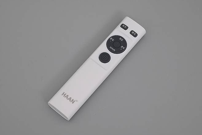 기본 구성품으로 제공되는 리모컨에는 본체 윗면에 있는 모든 버튼이 포함되어 있으며, 본체에는 없는 램프 버튼도 보인다. 램프 버튼은 전원을 켠 상태에서 본체 상부의 디스플레이를 끄는 기능이다.