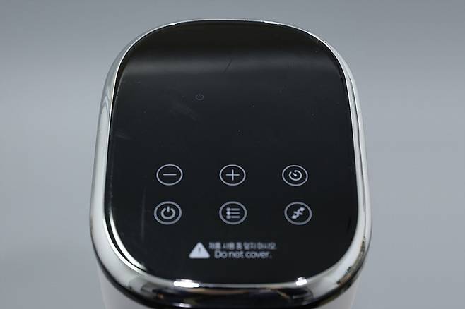 본체 윗면은 검은색에 가장자리가 메탈릭한 컬러로 포인트를 주고 있다. 또한 여섯 개의 터치 방식 버튼이 위치해 있으며, 버튼 바로 위 빈 공간은 디스플레이 영역이다.