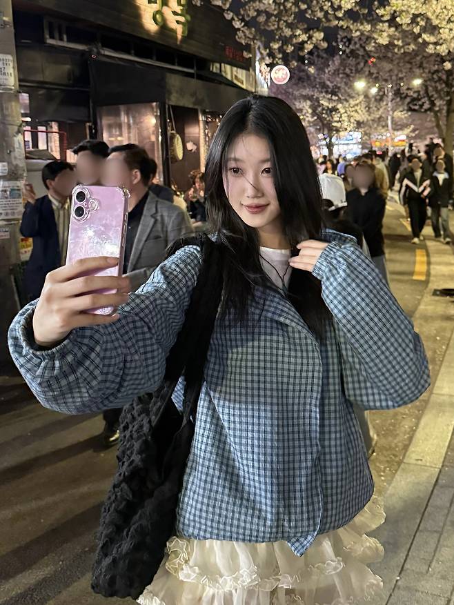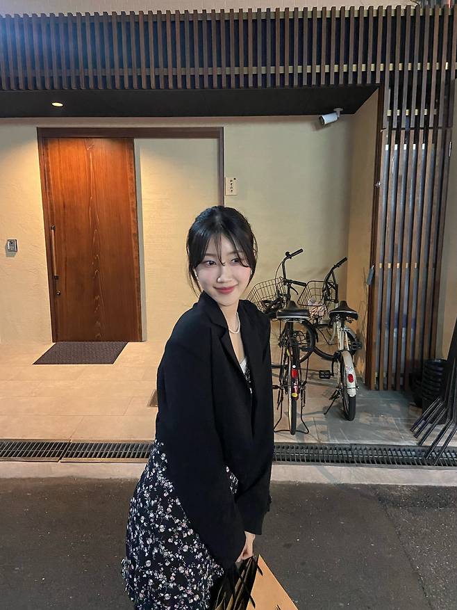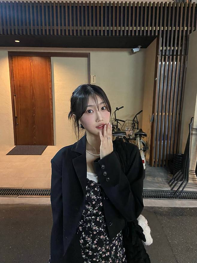 이 룩은 부담 없이 사랑스러움을 담을 수 있는 포인트 블랙 코디로,